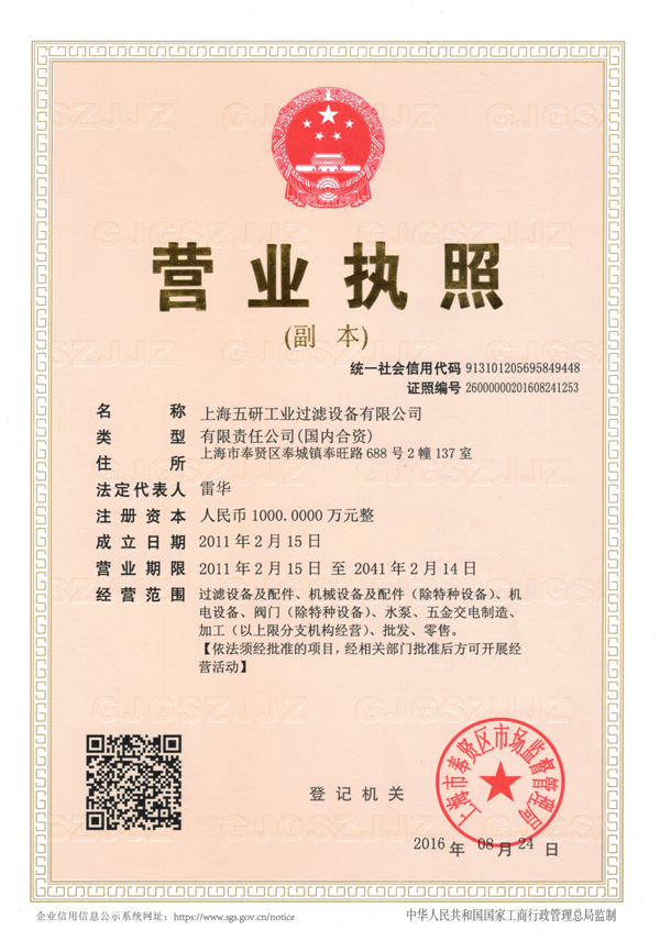 上海五研工业过滤设备有限公司