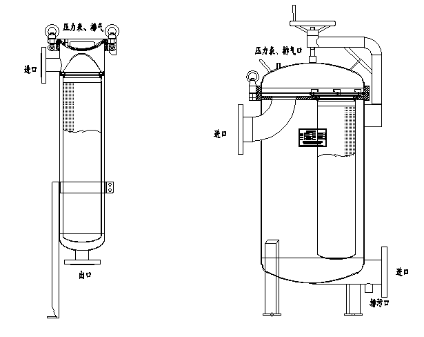 用户可以根据自身工艺条件需要选择如下形式的单袋过滤器: