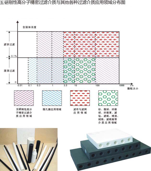 • PE/PA微孔管滤芯(PE管),以超高分子量塑料为基材,加以相应的添加剂(提高耐温性、抗老化性、化学稳定性)烧结而成的微孔体。具有很高的过滤精度、较好的抗拉强度、很好的化学稳定性、很长的使用寿命。经过二十多年的反复改进与研发形成8种过滤孔径、2种耐温、多种尺寸规格的过滤管与过滤板,或是为客户定制其他的形状。