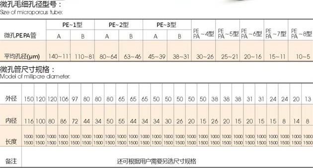 4、微孔PE材料耐温≤80℃;微孔PA材料耐温≤100℃。